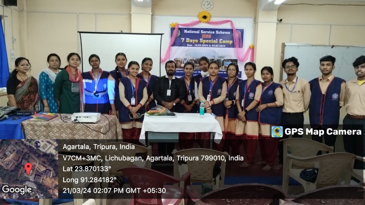 Gallery NSS Special Camp 2024 NSS Day celebration at Pulin Debbarman Memorial hall at SDM Govt Music College,Agartala,Tripura as on 18th January 2019. 7 Days NSS Special Camp Video 7 DAYS N.S.S SPECIAL CAMP 2019-PART-1 7 DAYS N.S.S SPECIAL CAMP 2019-PART-2 7 DAYS N S S SPECIAL CAMP 2019 PART-3 7 DAYS N S S SPECIAL CAMP 2019 PART-4 7 DAYS N S S SPECIAL CAMP 2019 PART 5